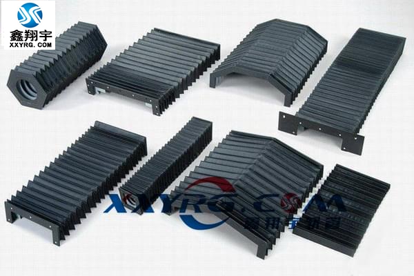 風琴(qín)式防護罩用尼龍革、塑料織物或合成橡膠折疊、縫製或熱壓而成,內有PVC板材支撐,可耐熱、耐油、耐冷卻液、非常大接觸溫度可達400℃,非常大行程速度可達100m/min