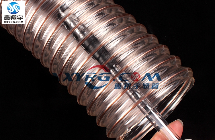 透明鋼絲pu風管是由進口聚氨脂TPU原料內帶鍍銅鋼絲生(shēng)產(chǎn)的一種耐磨的工業吸塵管,顏色:透明(míng)pu管壁,內嵌優(yōu)質鍍銅鋼絲螺(luó)旋加強。極輕且柔軟,易於打理,方便運輸且可(kě)以節省儲存空間。高耐(nài)壓和耐真空性能、耐(nài)磨損(sǔn)、耐礦物油、耐臭氧、耐老化(huà),彎曲半徑小可與直徑相同,特別(bié)適用於機械設備的動態設置