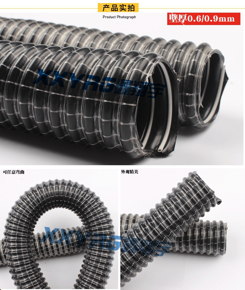 原料: 管壁:柔軟PVC, 螺(luó)旋絲:硬質PVC;